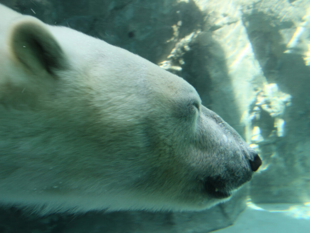 ガラス1枚の隔たりしかないので、ホッキョクグマの体の大きさ、表情、水中での手足の動きまで詳細に観察することができます。また、”シールズアイ”というドーム型の窓から外を眺めると、ホッキョクグマが餌だと思ってこちらをジロッと見ることも。それもそのはず、”シールズアイ”は、ホッキョクグマの餌であるアザラシの視点で作られているからです。ホッキョクグマの餌食寸前のアザラシの気持ちを体感。